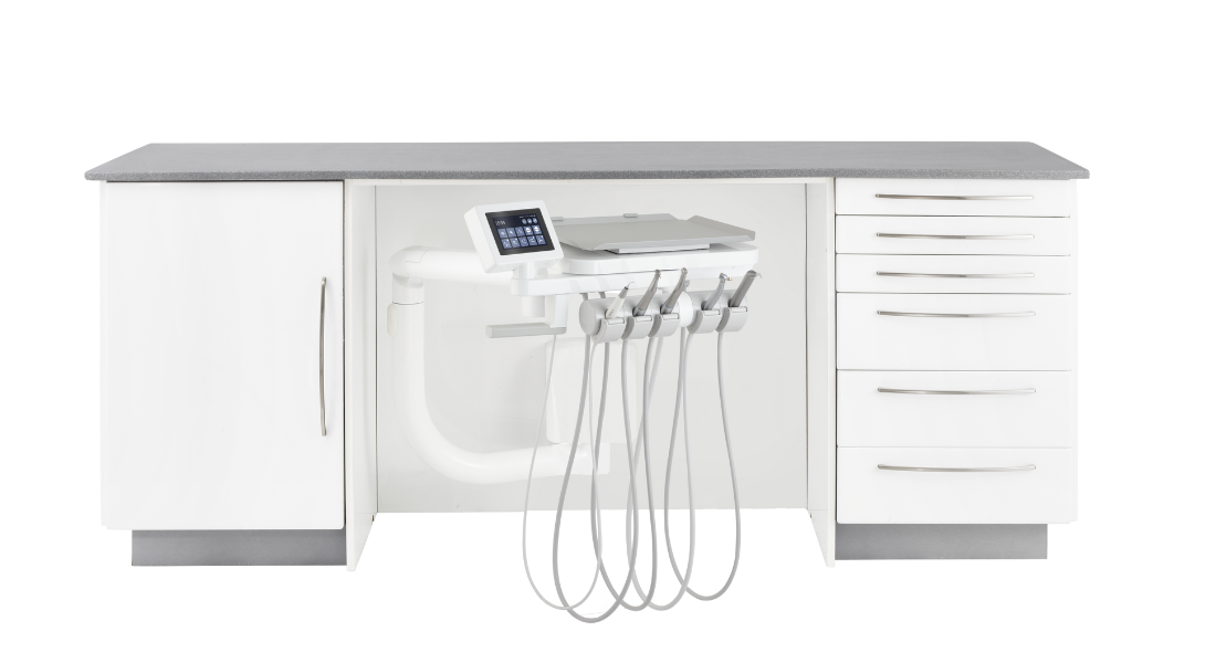 Spécificité Orthodontie : Existe en configuration dédiée avec un satellite de 6 modules optimisé pour le travail opérant entre 11h et 1h.